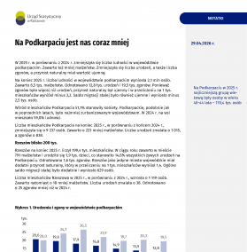 W 2025 r. w porównaniu z 2024 r. zmniejszyła się liczba ludności w województwie podkarpackim. Zawarto też mniej małżeństw. Zmniejszyła się liczba urodzeń, a także liczba zgonów, a przyrost naturalny miał wartość ujemną.