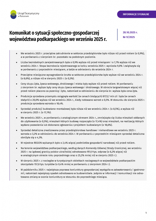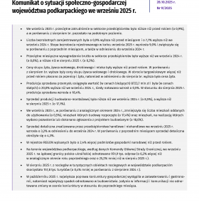 Komunikat o sytuacji społeczno-gospodarczej województwa podkarpackiego we wrześniu 2025 r.