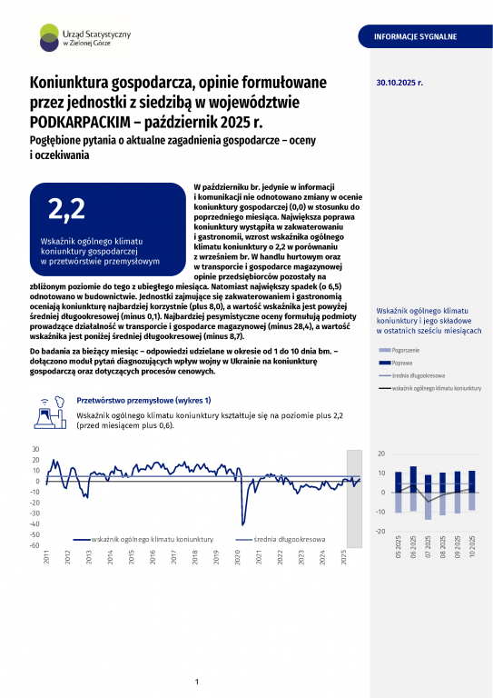 Koniunktura gospodarcza w województwie podkarpackim. Październik 2025 r.