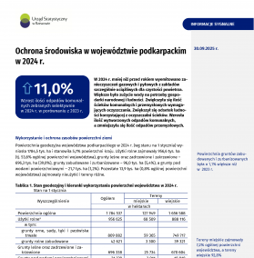 W 2024 r. mniej niż przed rokiem wyemitowano zanieczyszczeń gazowych i pyłowych z zakładów szczególnie uciążliwych dla czystości powietrza.  Większe było zużycie wody na potrzeby gospodarki narodowej i ludności. Zwiększyła się ilość ścieków komunalnych i przemysłowych wymagających oczyszczania. Zwiększył się odsetek ludno-ści korzystającej z oczyszczalni ścieków. Wzrosła ilość wytworzonych odpadów komunalnych, a zmniejszyła się ilość odpadów przemysłowych.