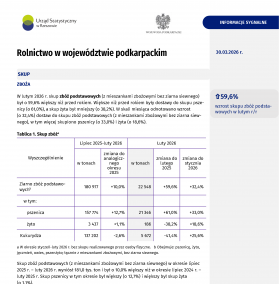 Informacja sygnalna „Rolnictwo w województwie podkarpackim” przygotowywana we Współpracy z Wojewodą Podkarpackim zawiera informacje z zakresu rolnictwa z uwzględnieniem skupu i cen ważniejszych produktów rolnych oraz koniunktury w gospodarstwach rolnych.